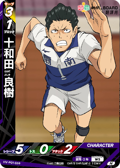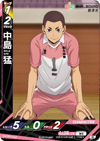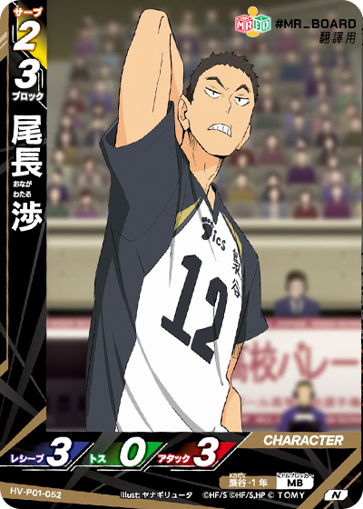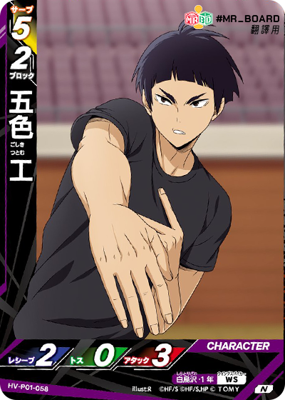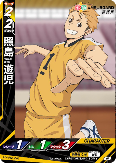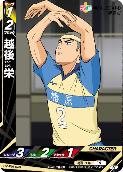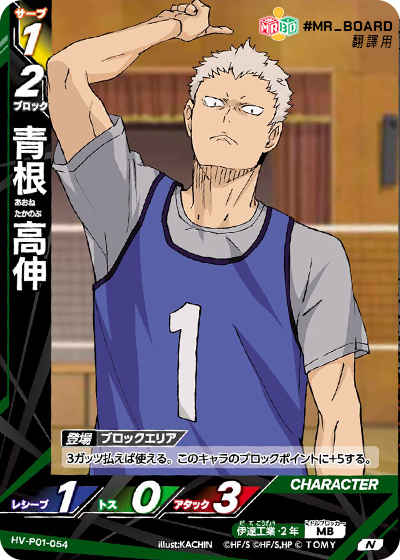 ![]() | HV-P01-054 N 登場 攔網區 支付3 Guts發動。 此角色攔網值+5。 |