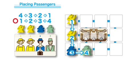 每個回合,你可以從你手中的兩張乘客卡牌中選擇一張,